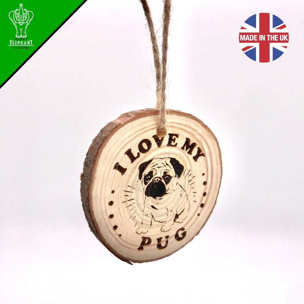 / I Love My Pug – Hanging Wooden Disc